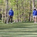 The top score for the 18-hole day — in gusty windy conditions — came from the foursome (pictured left to right, above) of Schuylar Harmison ’22, Andrew Gascho, athletic director; Justin King, high school principal; and Ryan Slonaker ’22.