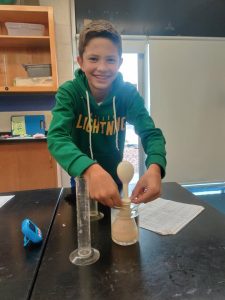 A 7th grade student working on cellular respiration and fermentation in the lab.
