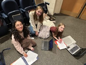 Students studying in the theater between scenes.