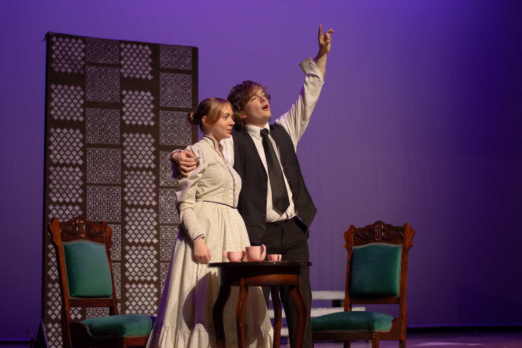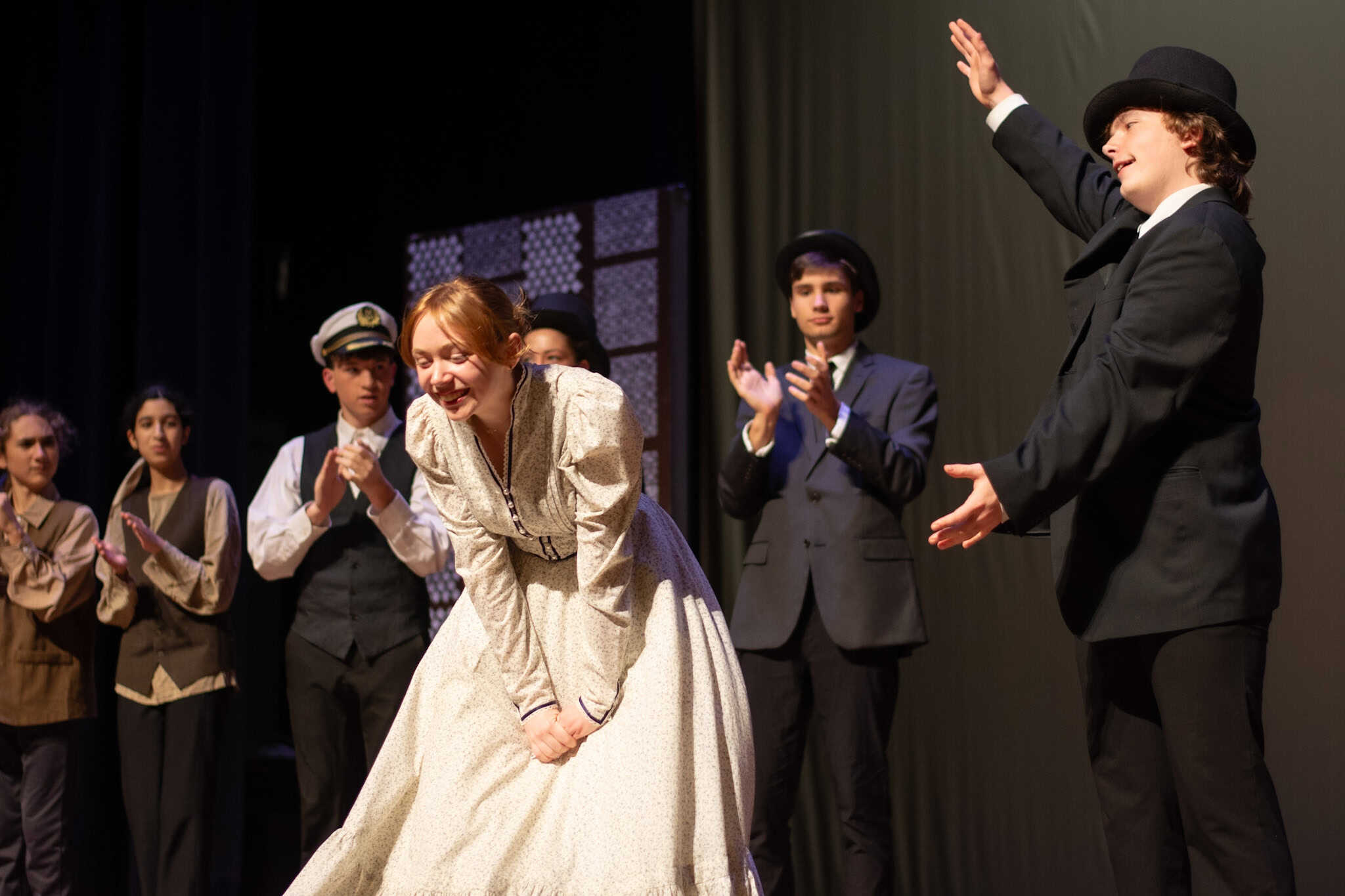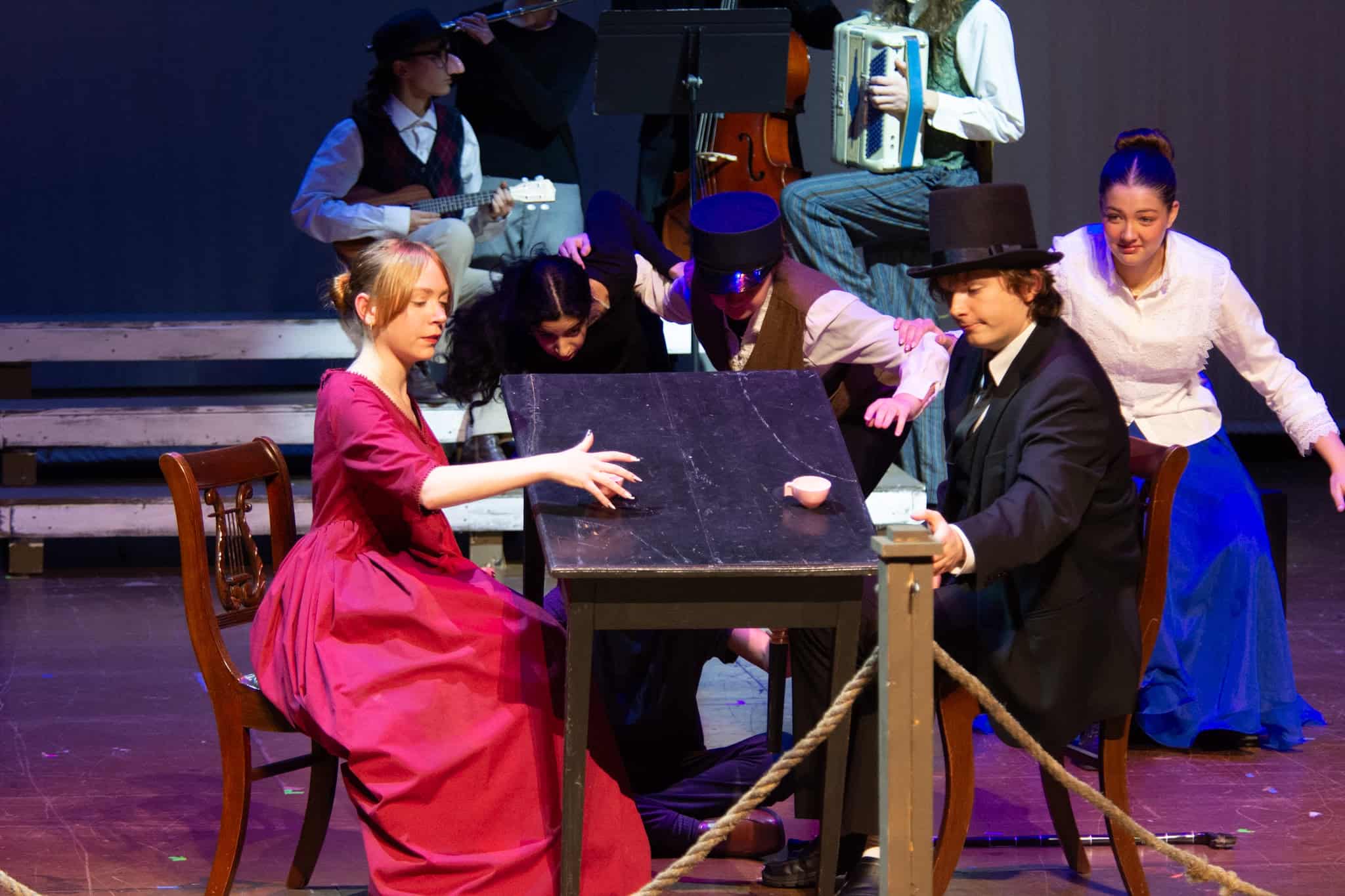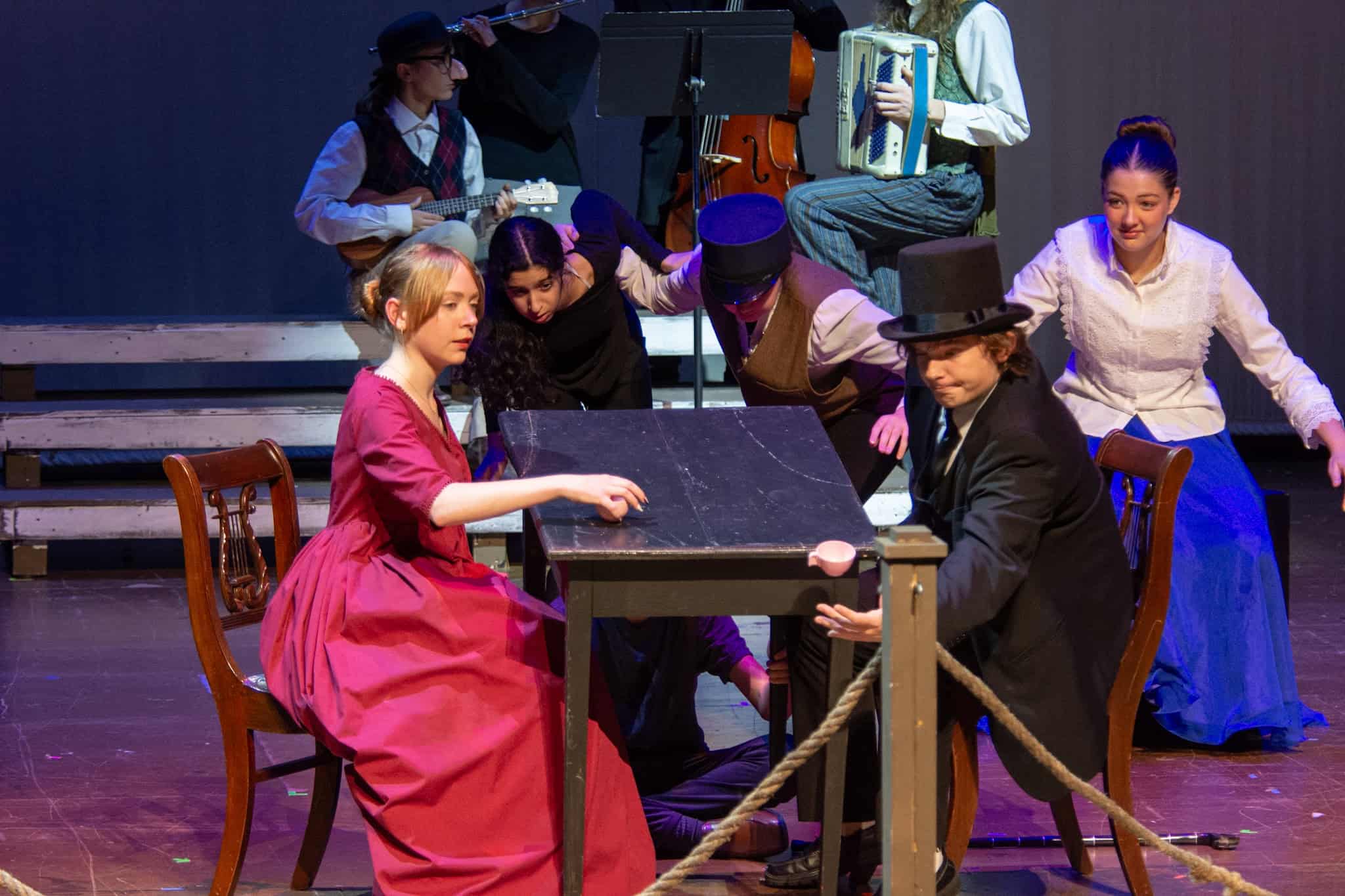 Lauren Barker, con la ayuda de otros padres del grupo de teatro EMS, organizó un banquete a la luz de las velas, apropiado para la época, para el elenco, demostrando su compromiso para ayudarlos a imaginar a sus personajes en un entorno social, lo que probablemente también les ayudó en su actuación.