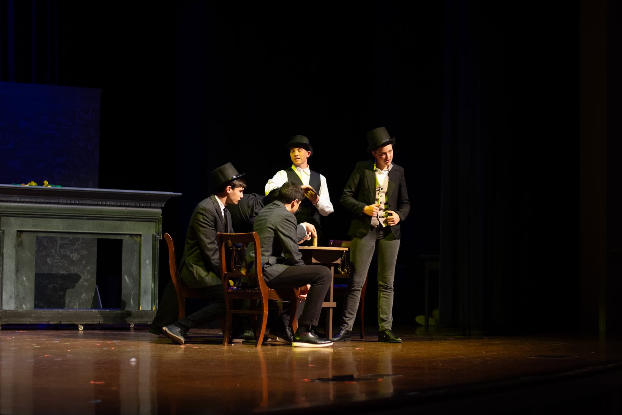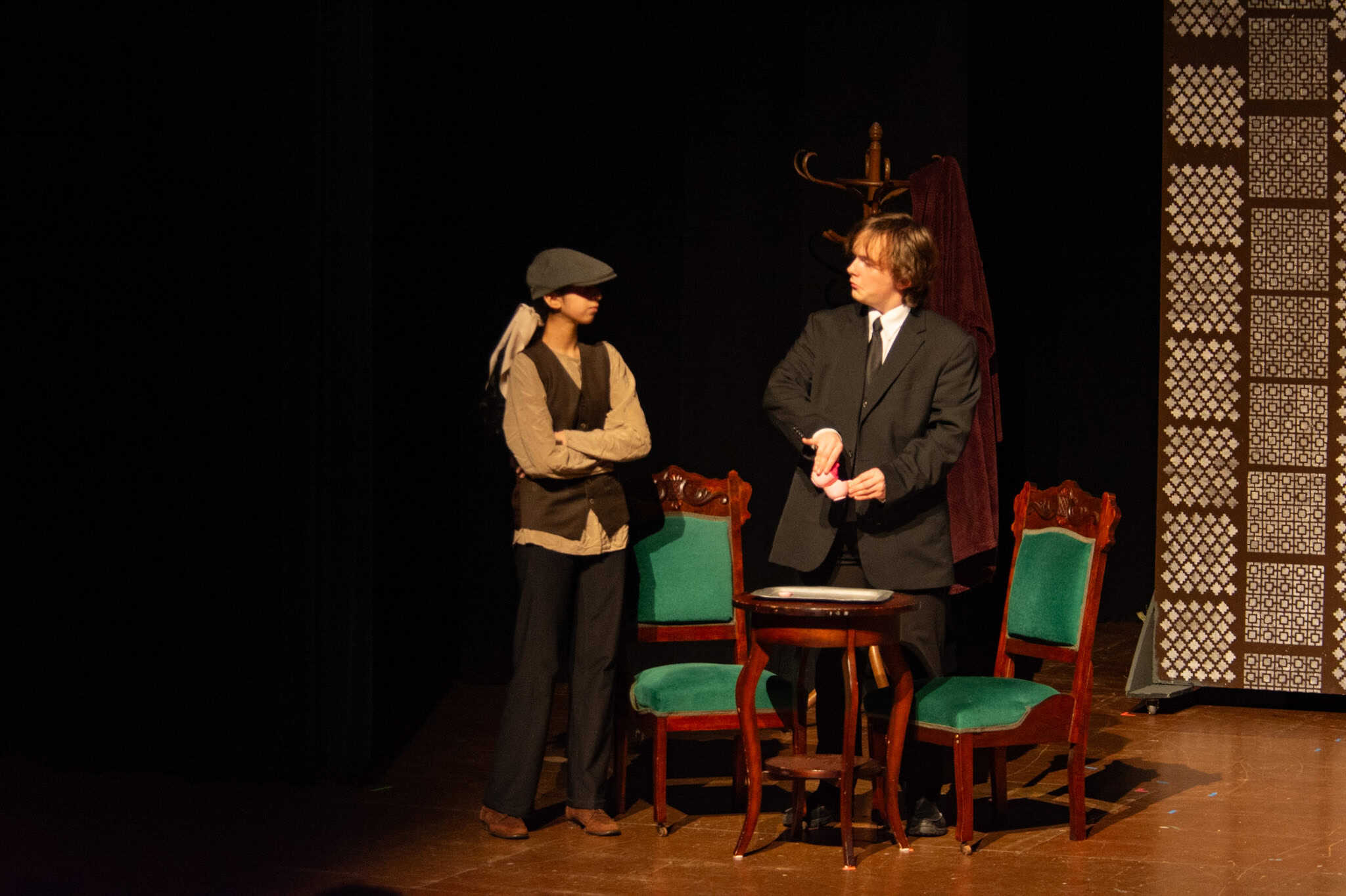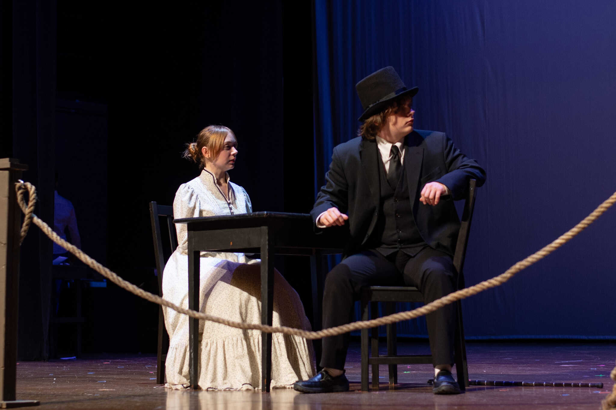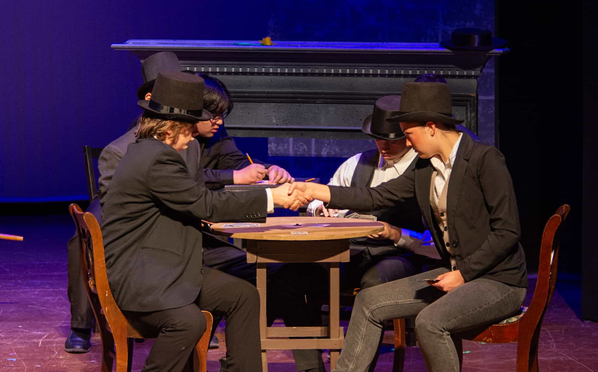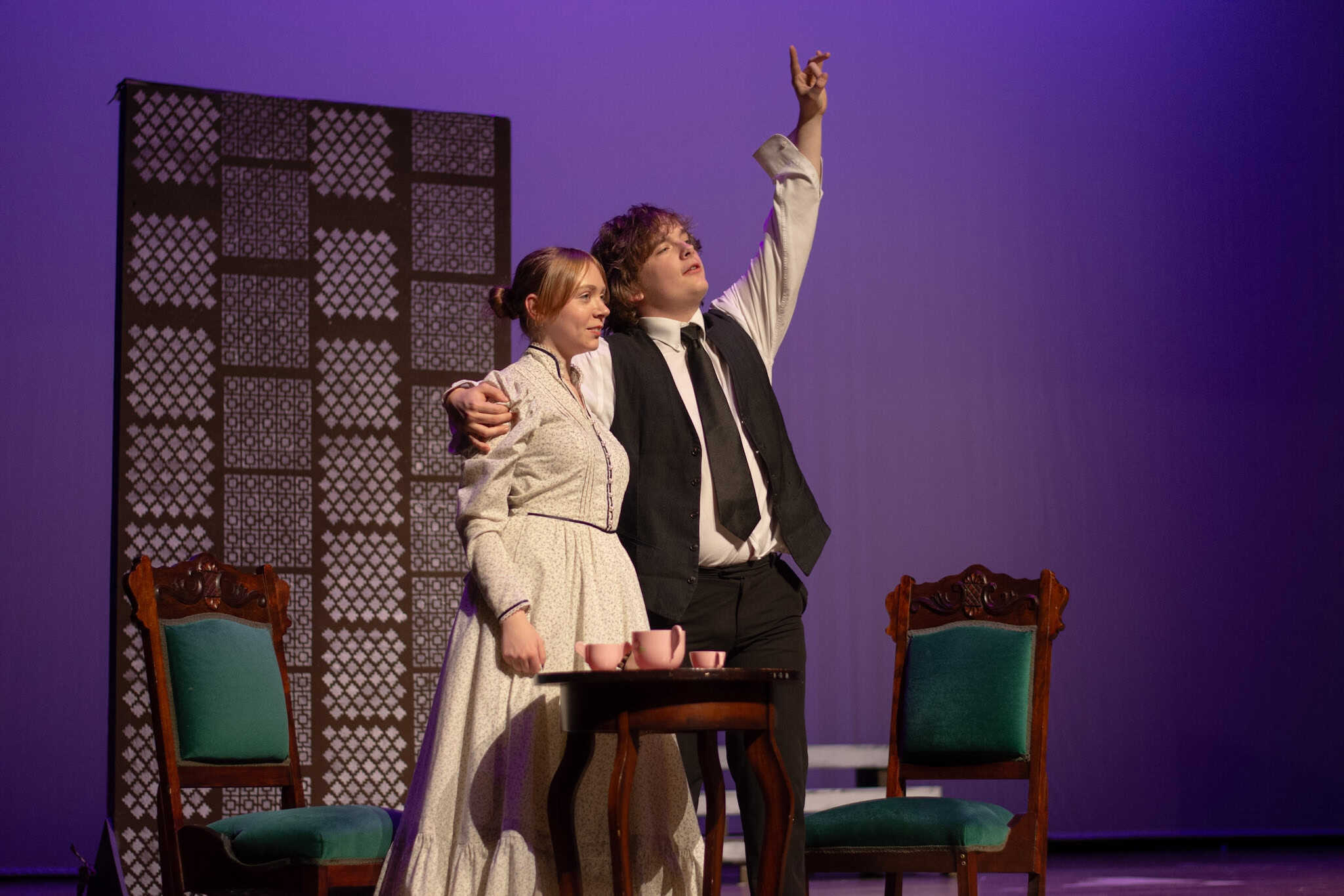 Lauren Barker, con la ayuda de otros padres del grupo de teatro EMS, organizó un banquete a la luz de las velas, apropiado para la época, para el elenco, demostrando su compromiso para ayudarlos a imaginar a sus personajes en un entorno social, lo que probablemente también les ayudó en su actuación.