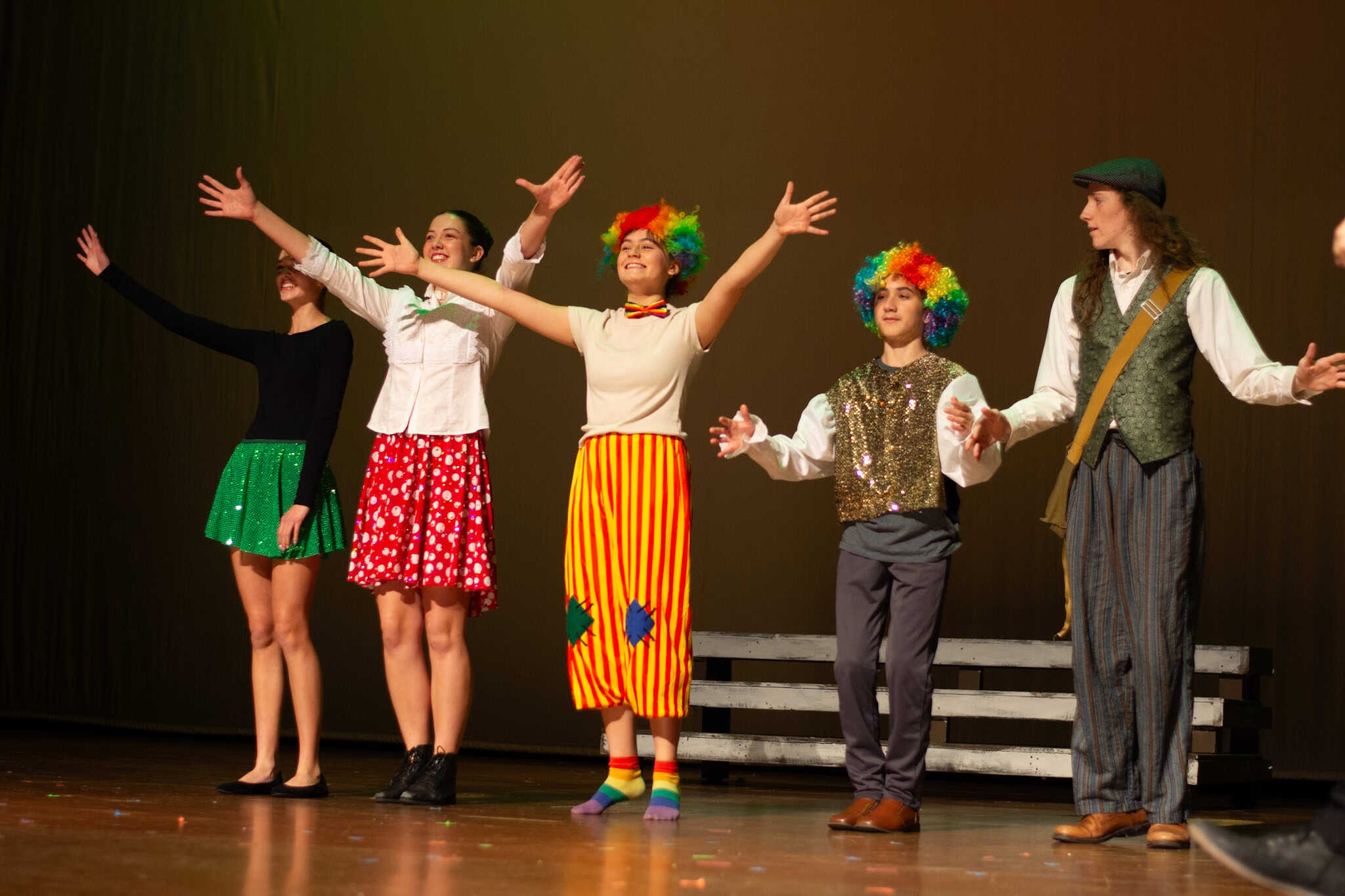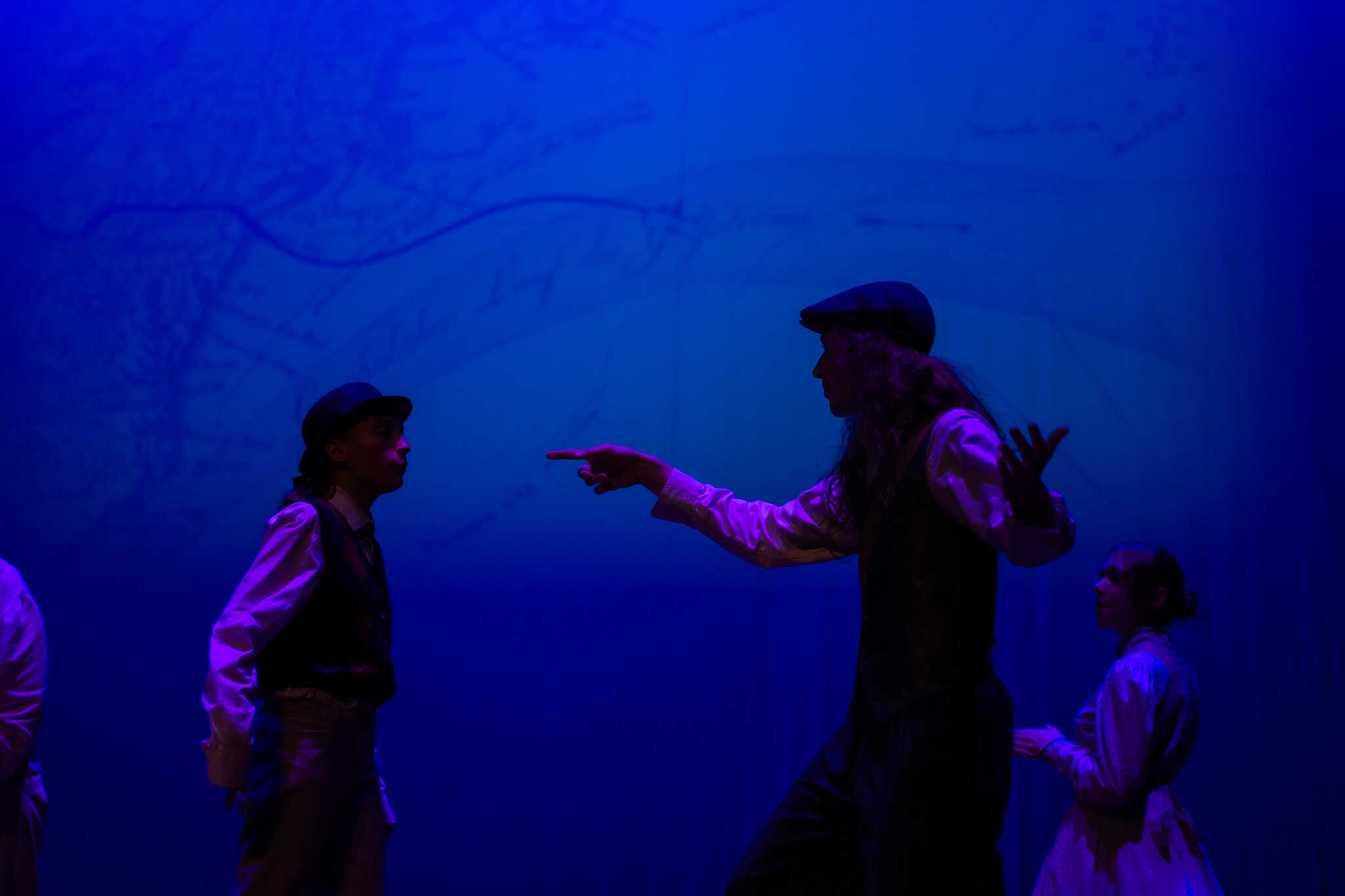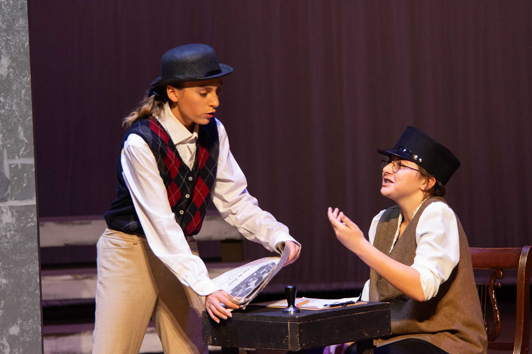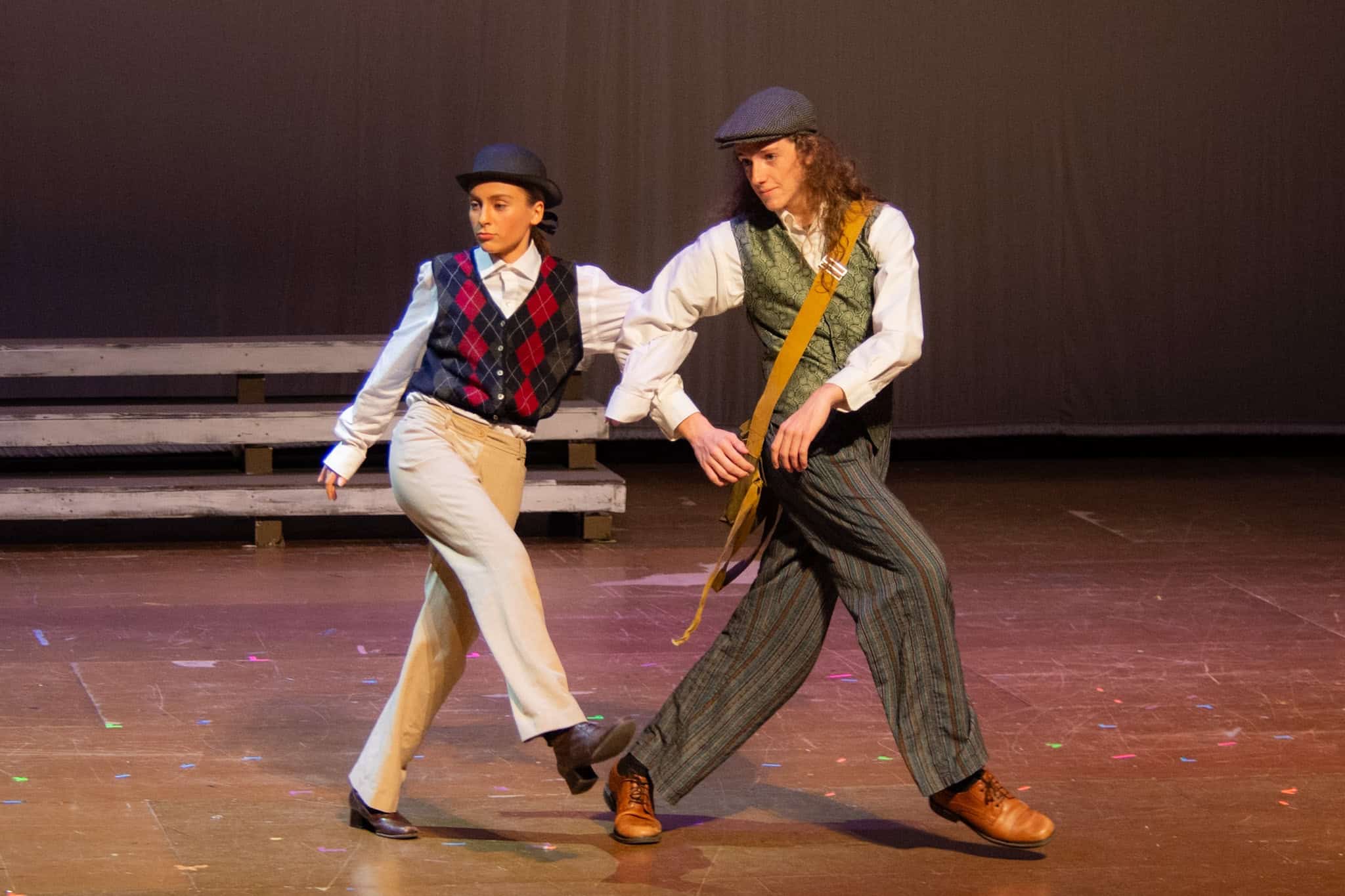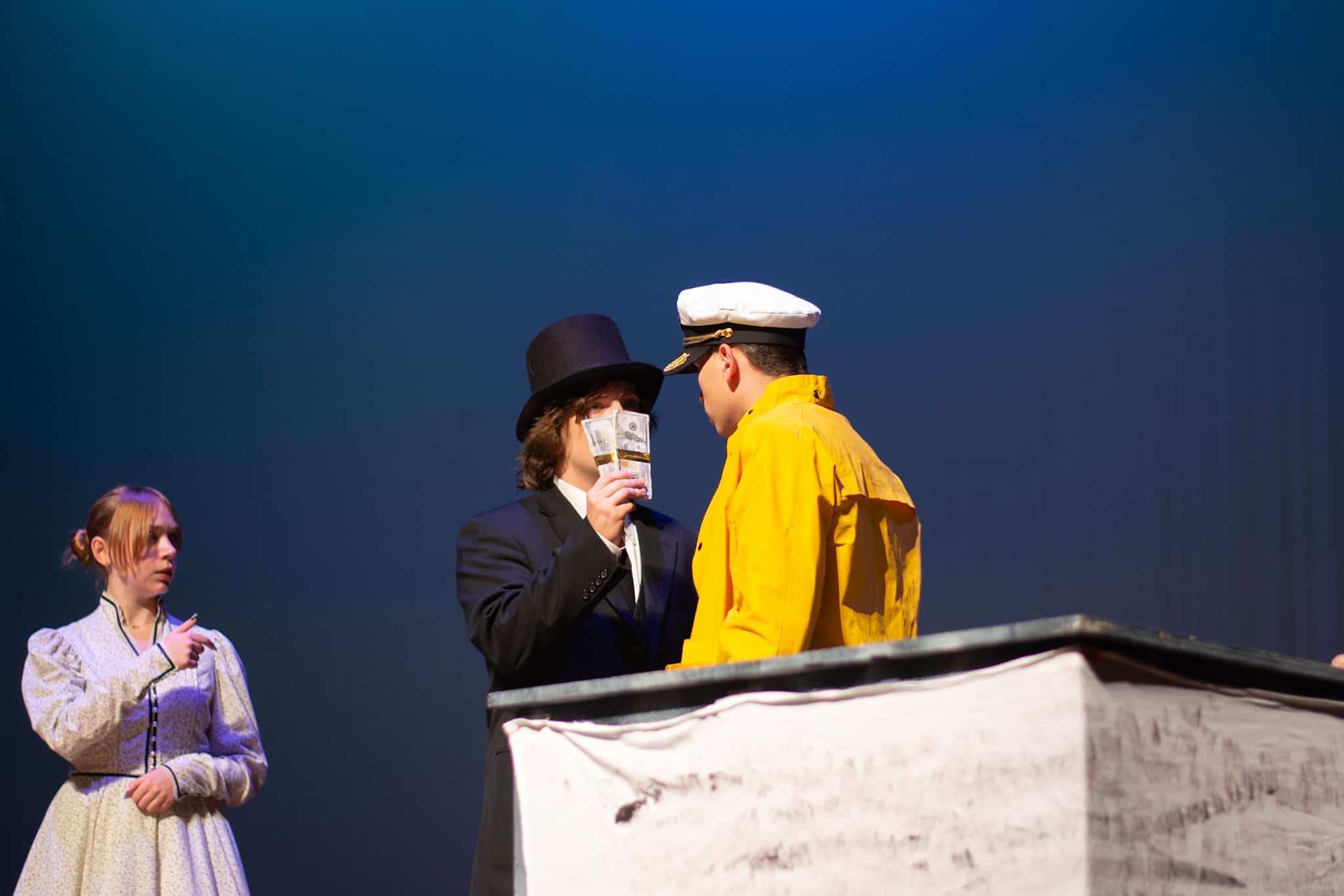 “Uno de mis momentos favoritos fue el bloqueo de la escena de los bandidos en el segundo acto, cuando secuestran a Passepartout. Es un momento tan absurdo. Hay un caballo falso, máscaras, sombreros de vaquero, y los bandidos se llaman John, Johnson, Son, y creo que Johnsonson. Para asegurarnos de que lo teníamos todo controlado y que nadie recibiera un codazo por accidente, lo ensayamos a cámara lenta con todos cayendo al suelo de forma hilarante y gritando '¡Johnson!' a paso de tortuga. Ha sido muy divertido trabajar con los estudiantes y Liz para que los alumnos pudieran encontrar esos momentos absurdos y tomar decisiones divertidas, tanto si al final los incluimos en la obra como si no‘. – Elizabeth Eby, codirectora