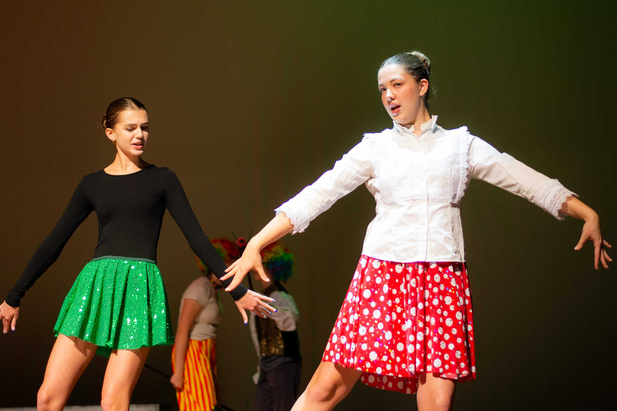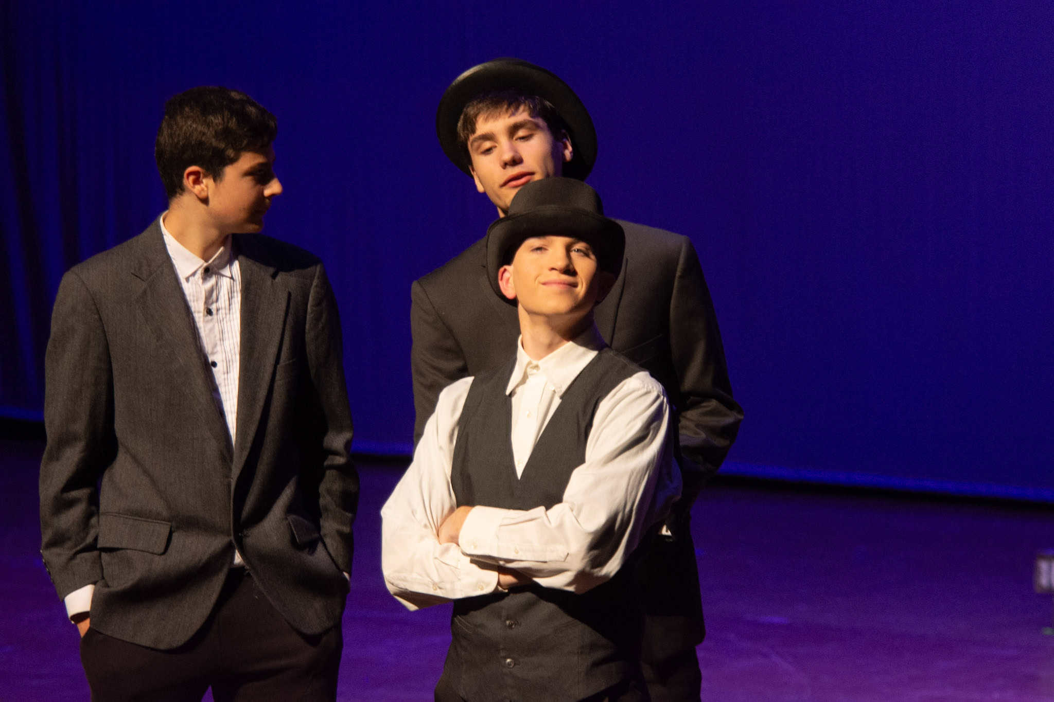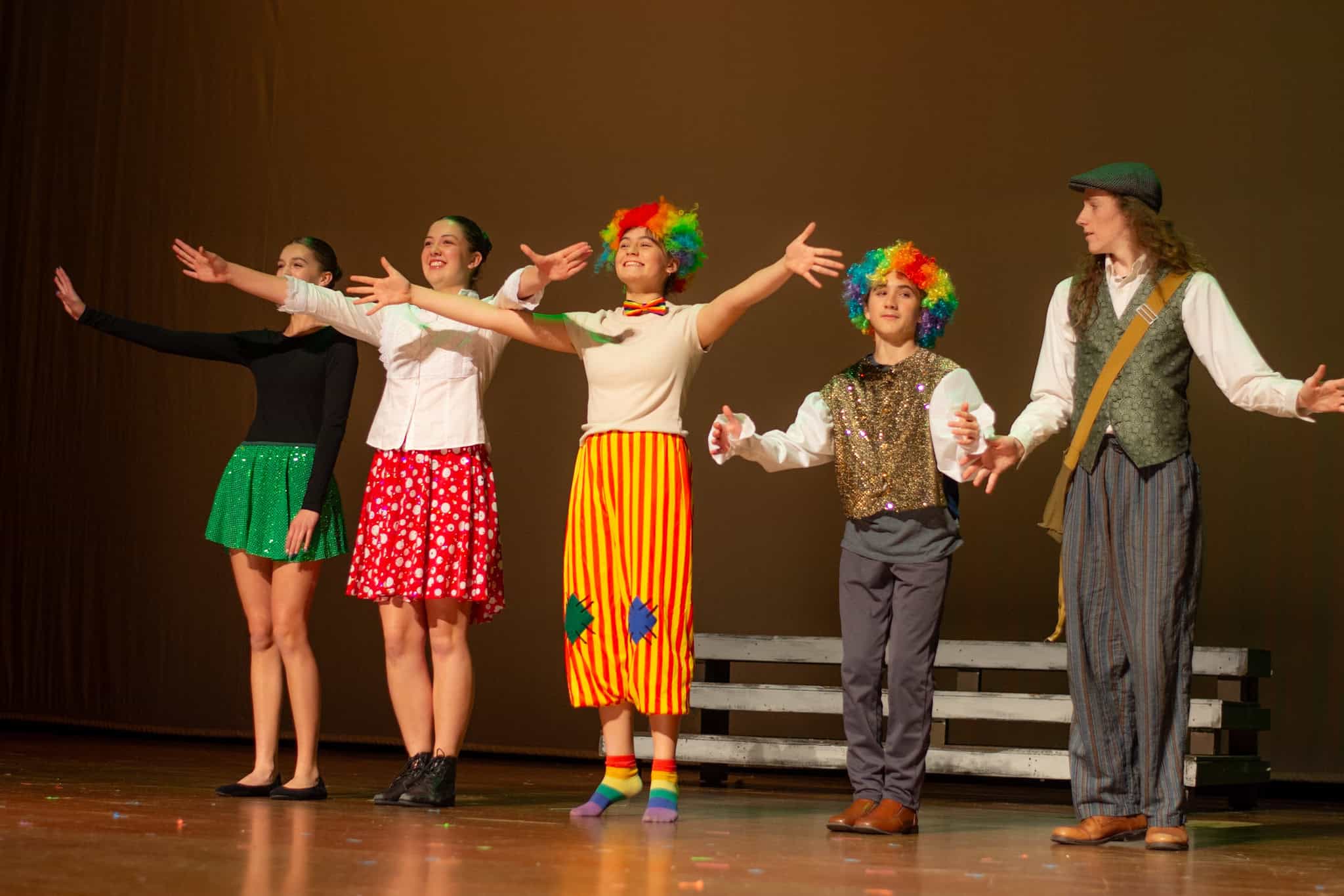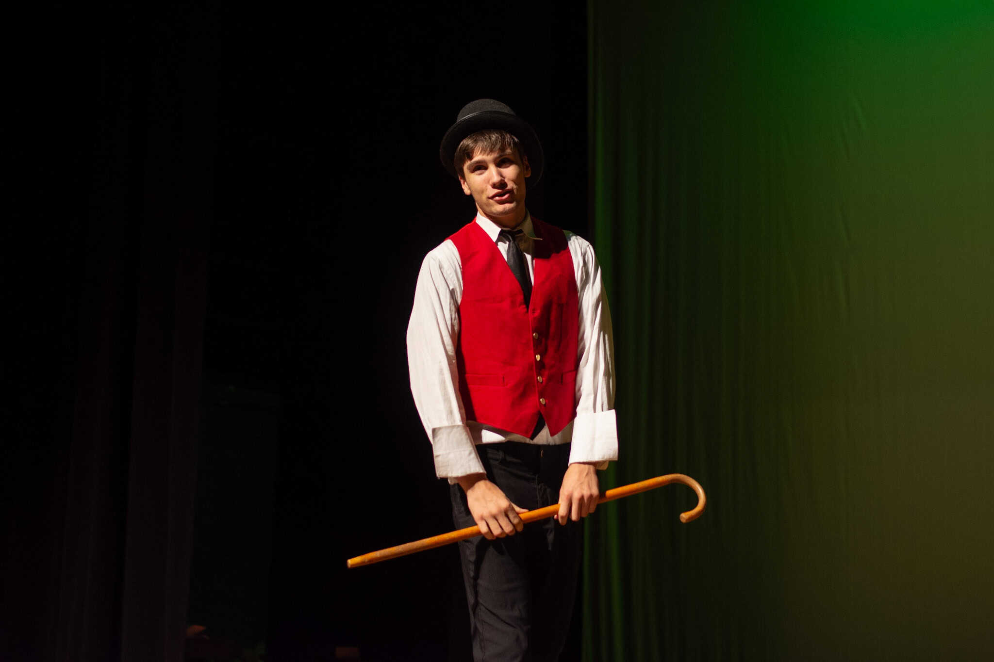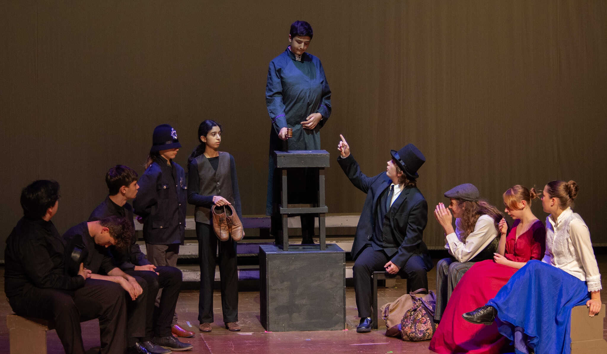 “Uno de mis momentos favoritos fue el bloqueo de la escena de los bandidos en el segundo acto, cuando secuestran a Passepartout. Es un momento tan absurdo. Hay un caballo falso, máscaras, sombreros de vaquero, y los bandidos se llaman John, Johnson, Son, y creo que Johnsonson. Para asegurarnos de que lo teníamos todo controlado y que nadie recibiera un codazo por accidente, lo ensayamos a cámara lenta con todos cayendo al suelo de forma hilarante y gritando '¡Johnson!' a paso de tortuga. Ha sido muy divertido trabajar con los estudiantes y Liz para que los alumnos pudieran encontrar esos momentos absurdos y tomar decisiones divertidas, tanto si al final los incluimos en la obra como si no‘. – Elizabeth Eby, codirectora