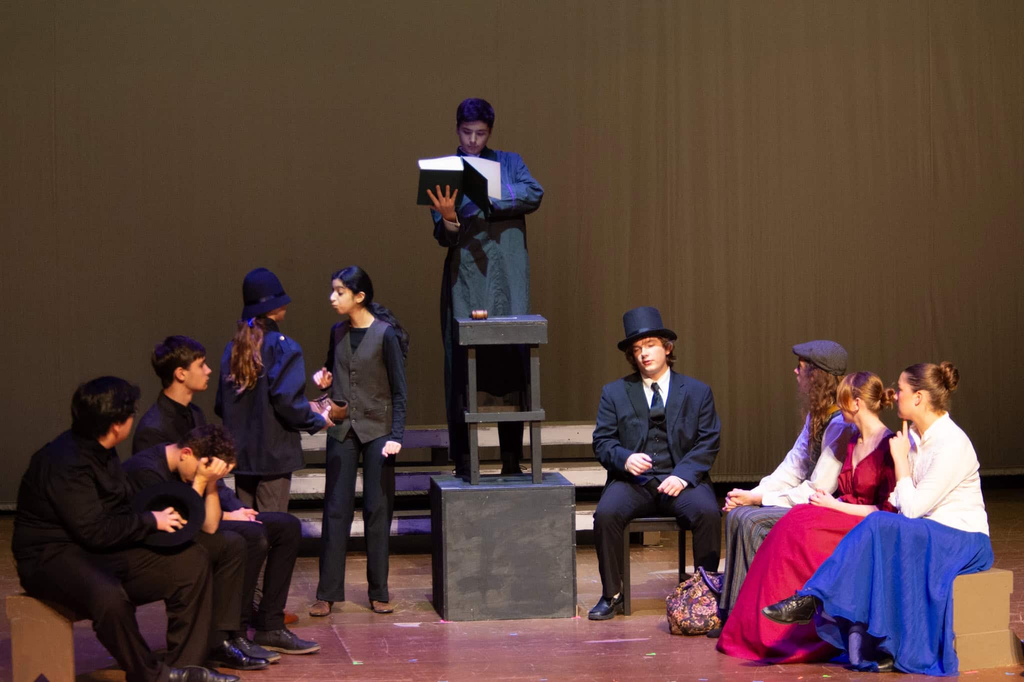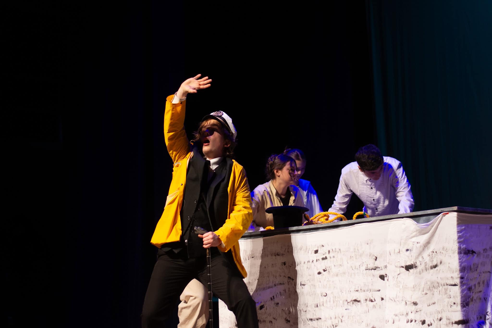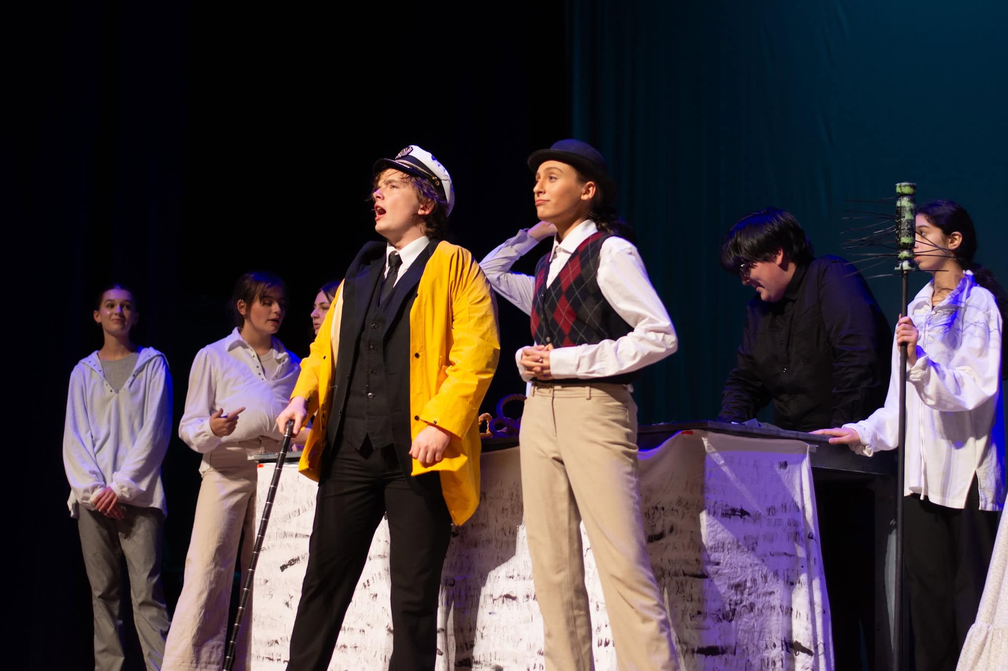 La trama sigue a Phileas Fogg (Jackson Comfort '26) en su vertiginoso viaje alrededor del mundo, utilizando diversos medios de transporte: tren, elefante y barco. Un momento destacado de la producción fue la representación, por parte de los estudiantes, de estar a bordo de un barco, balanceándose rítmicamente en perfecta armonía al imitar las olas del océano, acompañados de una animada melodía marinera interpretada también por nuestros estudiantes. La producción contó además con impresionantes efectos de sonido e iluminación, hábilmente dirigidos por Samuel Aponte '28, que enriquecieron la experiencia en general.