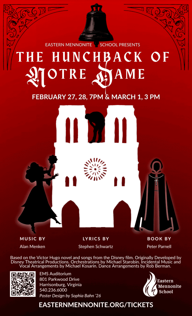 Bajo la dirección de la querida directora Joy Anderson, los estudiantes han trabajado incansablemente para encarnar los intrincados personajes y las complejas emociones que exige el clásico de Victor Hugo. Sigue a Quasimodo, interpretado por Lewis Yoder (promoción 26) y Jackson Comfort (promoción 26), el solitario campanero de la Catedral de Notre Dame, mientras se desenvuelve bajo la atenta mirada del archidiácono Frollo, interpretado por Marshall Nichols (promoción 26). Sé testigo de la intensa lucha que surge cuando la siniestra obsesión de Frollo con la encantadora bailarina romaní Esmeralda, interpretada por Sienna Kauffman (promoción 27).